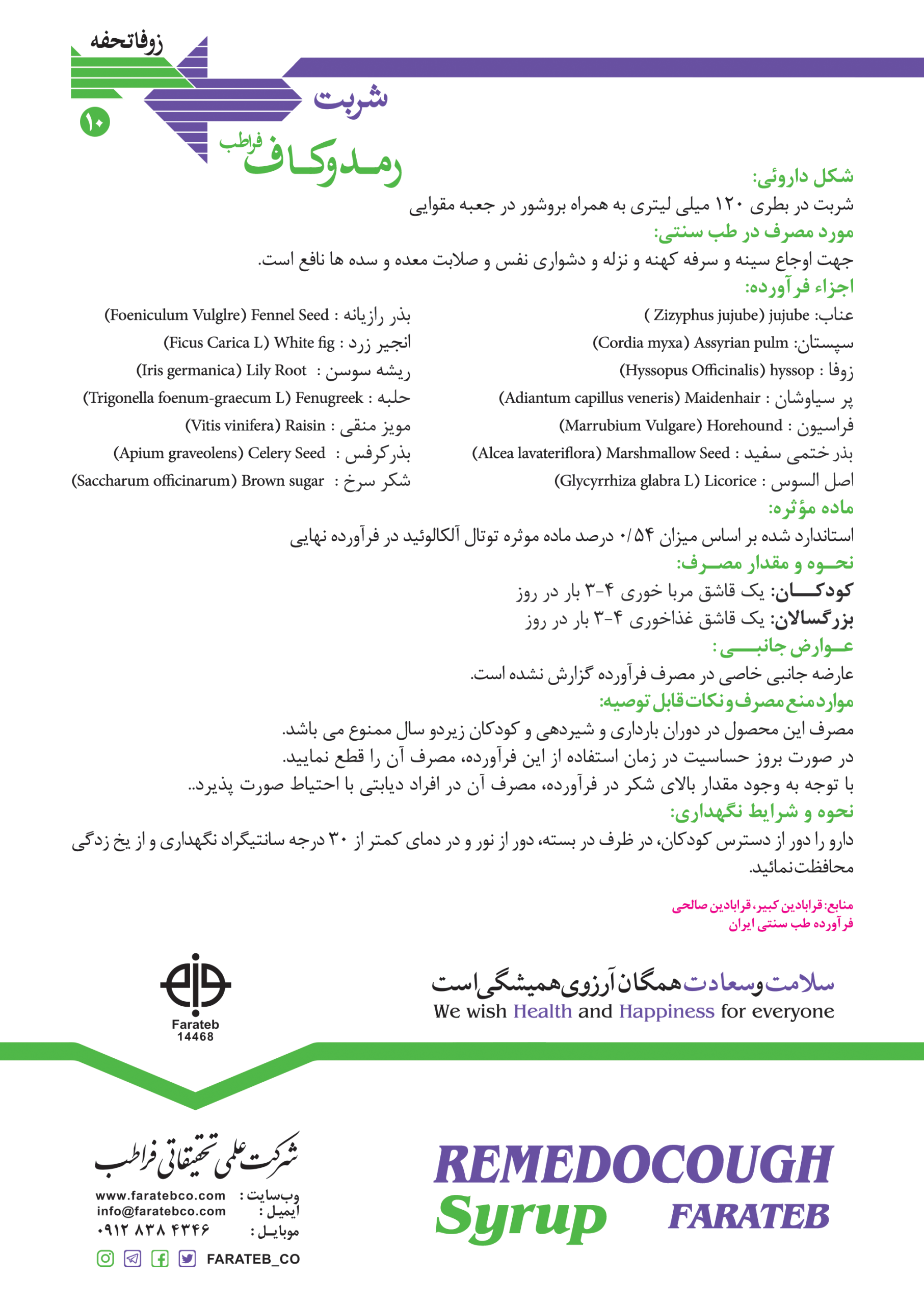 ویژگیها و مشخصات شربت رمدوکاف زوفا تحفه فراطب