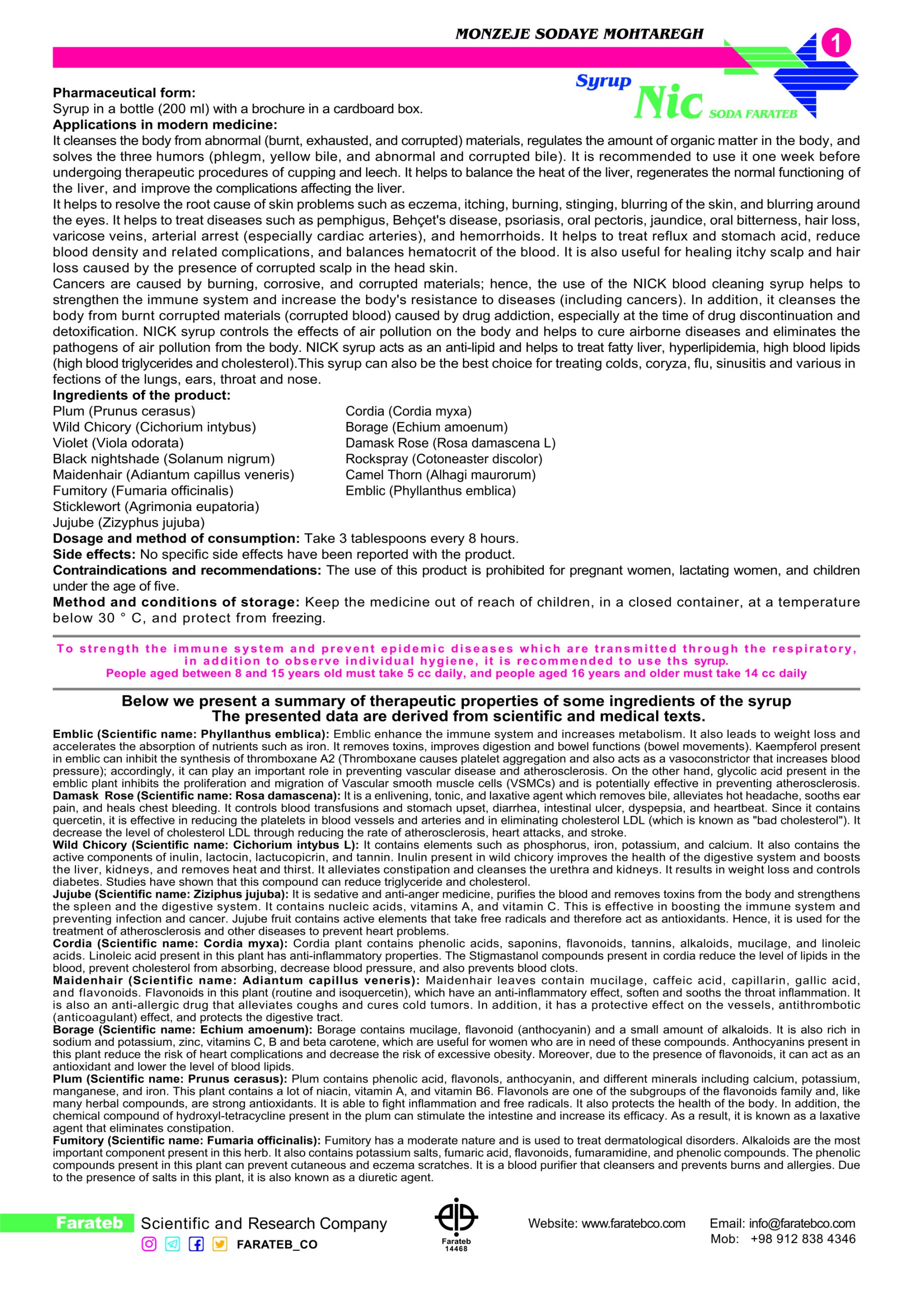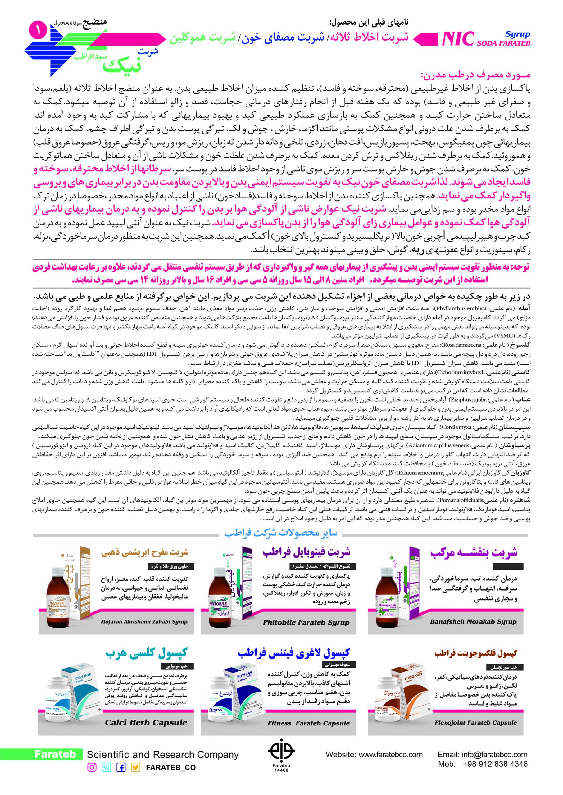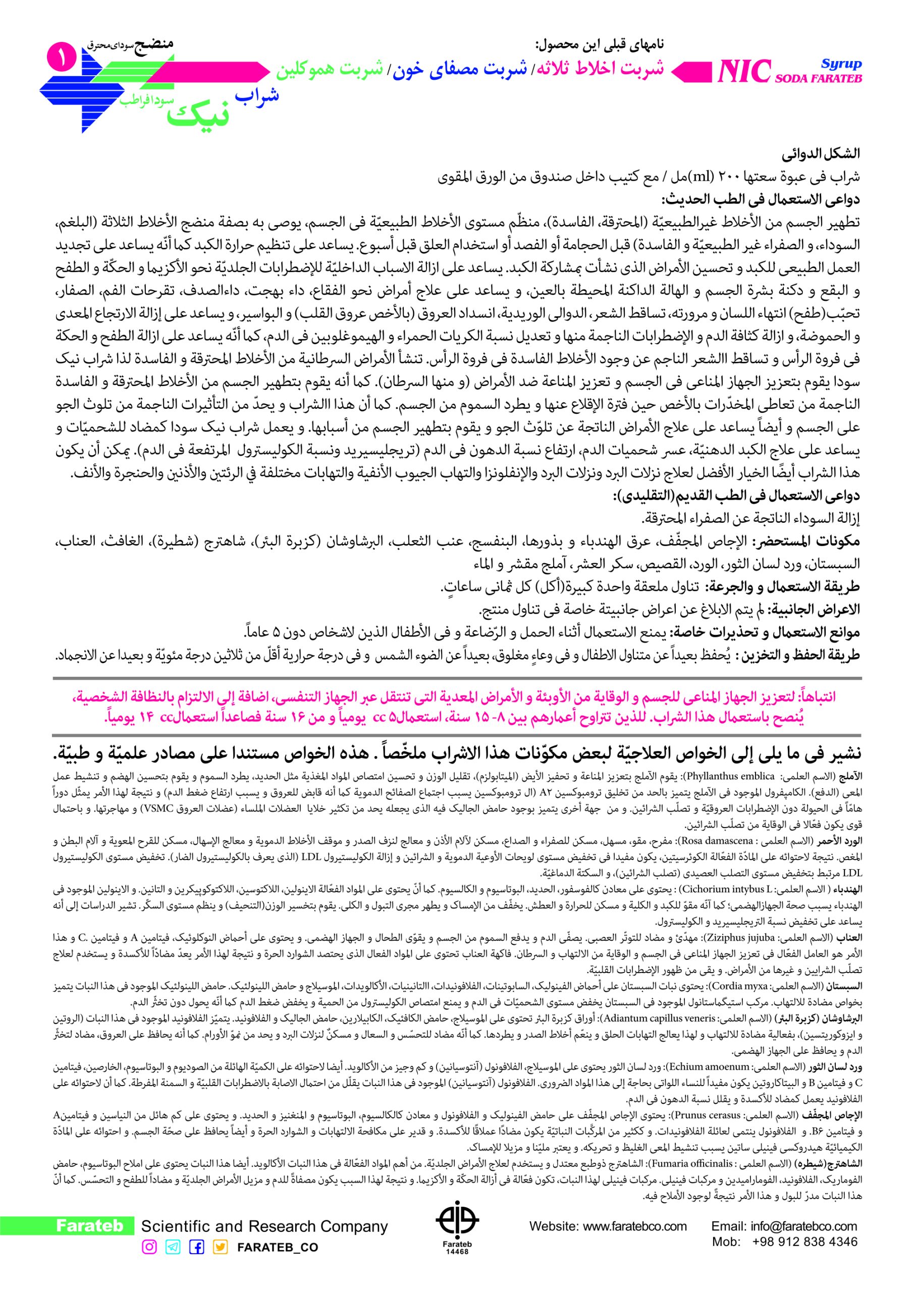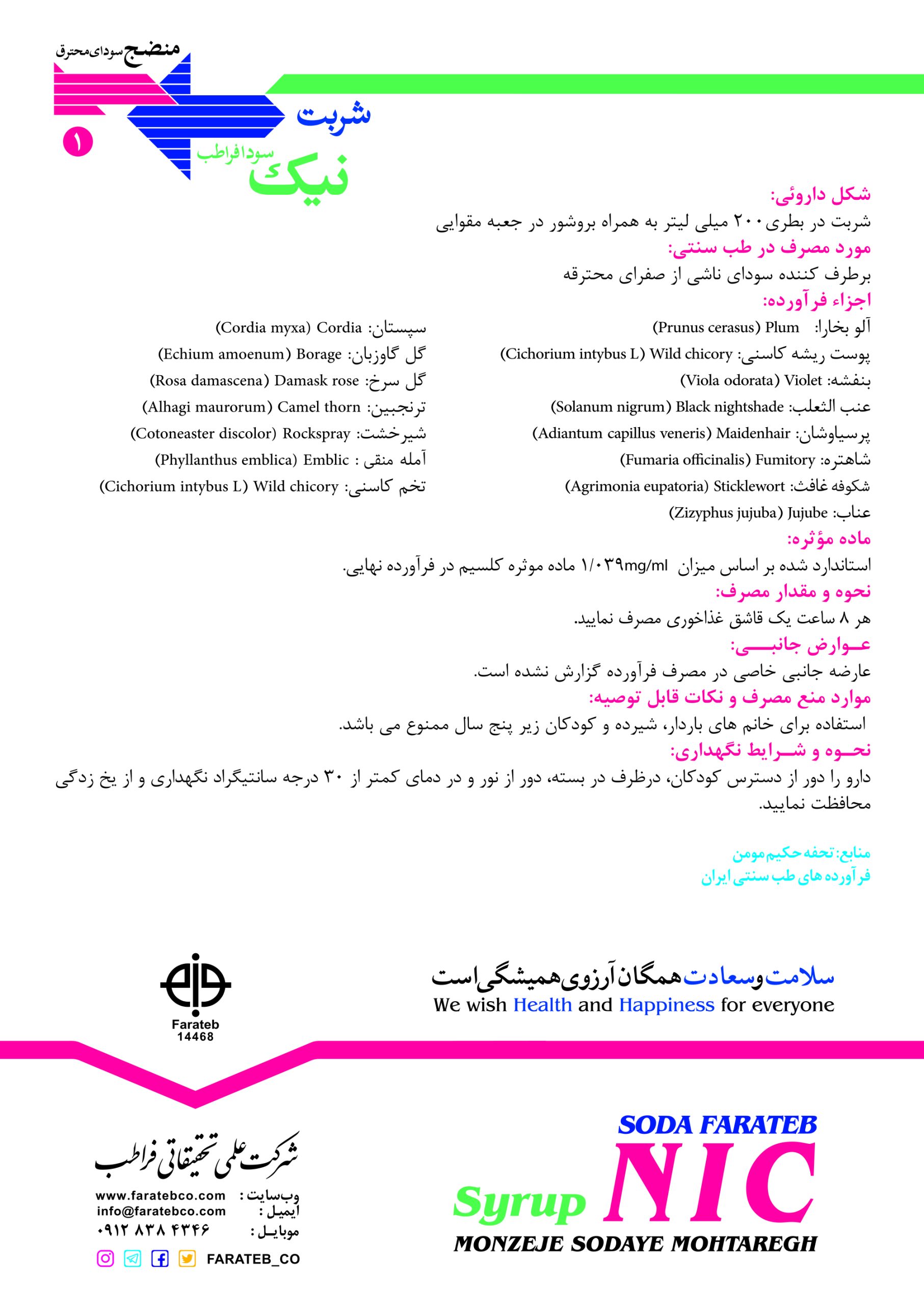 مشخصات کامل شربت نیک سودا فراطب و ترکیبات گیاهی آن